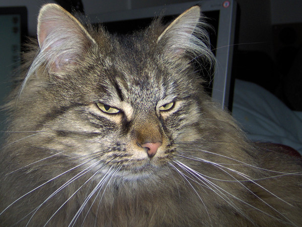 ... back to the grumpy face. Jeg fikk fisk i stad, tufsen. Nå vil jeg ha orntli' kattemat!
