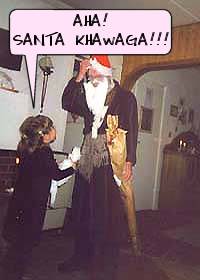 Sukk. Så lenge varte den illusjonen. Tidligere hadde jeg i flere år vært husnisse for naboen til "Vestereng", som hadde tre jenter. Jeg rigget meg til med vatt i nesa, kitt i gommene, sminke i øynene og ekte løsskjegg. Brukte kubjelle, og kom og gikk gjennom krattskogen. De hadde vel heller aldri sett meg med briller, bare linser. De fant aldri ut hvem dette var, men denne her var altså for smart. Mamma eller mormor hadde kameraet klart, og foreviget flausen. Herregud vesla, jeg mente jo ikke å lure deg ... nåvel, kveldens utbytte ble såpass at jeg var tilgitt. Det var vel det samme hvem som kom med det ... hun tror fremdeles på påskeharen, men det er helt klart et skuespill, fordi det er spennende å lete seg frem til påskeegget.